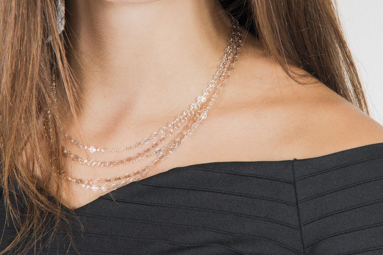 Silver necklace 5 lines graduated in 2 colors (White and Pink plated)
